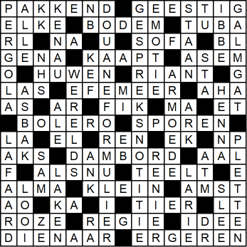 De ij (voor zover die al voorkomt) wordt als twee letters geschreven. "Onthul" laat de oplossing van het geselecteerde woord zien. "Controleer" markeert de verkeerd ingevulde letters in de hele puzzel. De link "Oplossing" toont de oplossing van de hele puzzel.